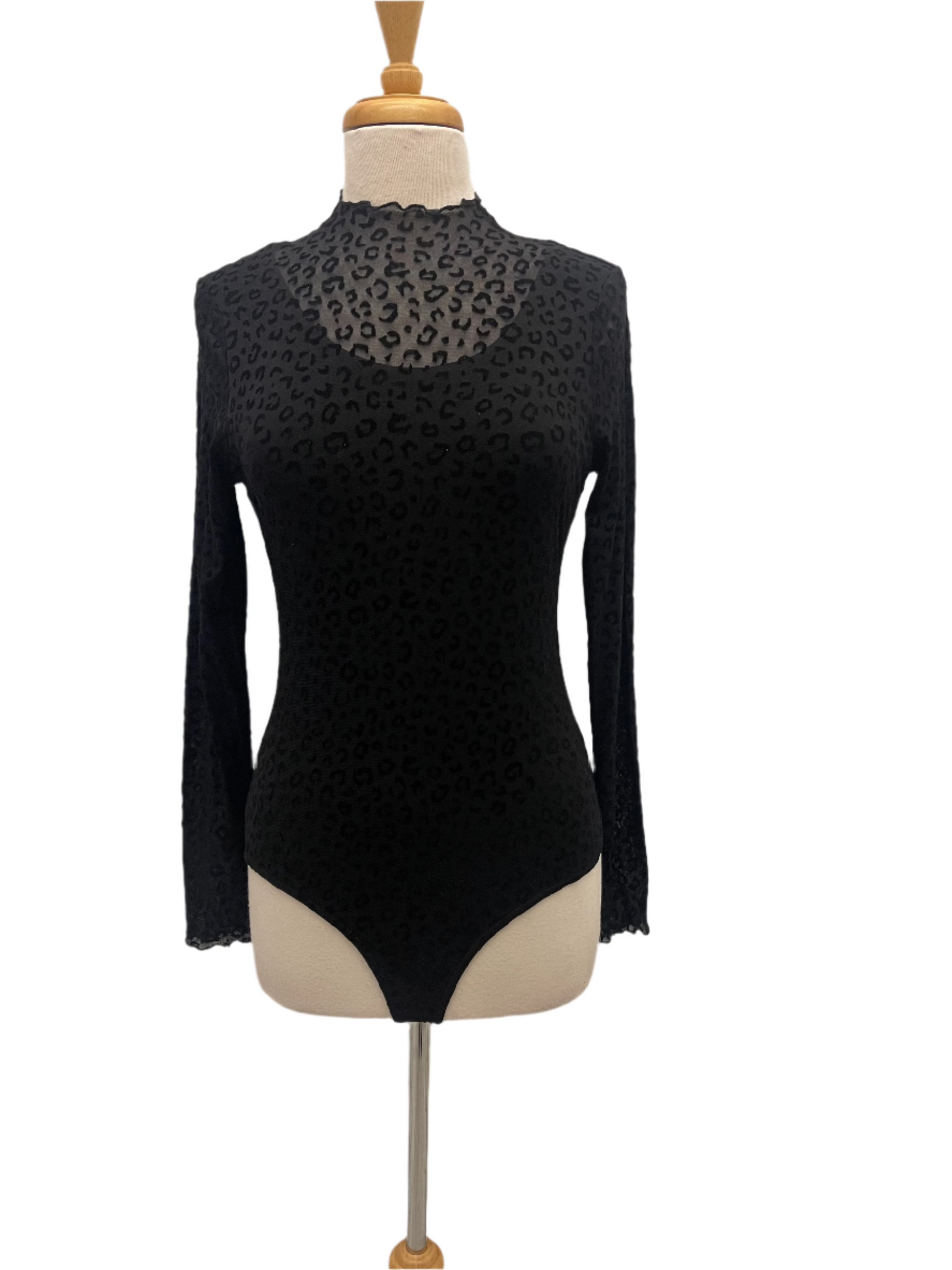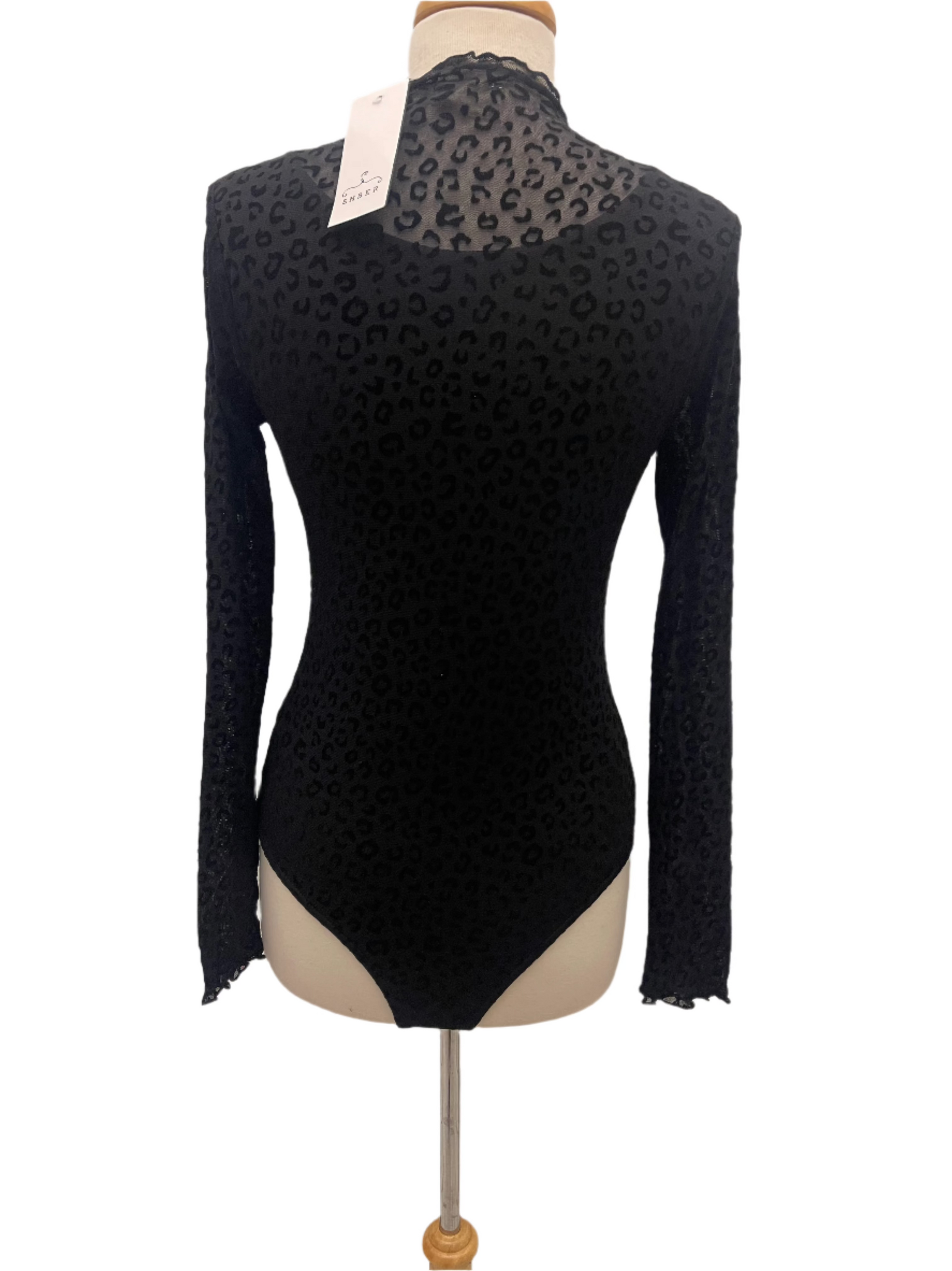 This Ember Black Bodysuit is a must-have for your wardrobe. The cheetah print adds a touch of wildness, while the velour print and mesh provide a luxurious feel. The double-layered design offers maximum comfort and support. Upgrade your style with this statement piece.